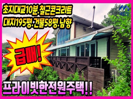 본대지195평은 도로지분 별도, 가로 긴 직사각형 2단 토지모양은 아랫단에주차장과 텃밭,윗단에 주택과 잔디마당있는 형태. 전면으로 비가림있는 넓은 데크 .건물 측면과 뒷편으로는 비가림되어있는 외부 창고가 있습니다.